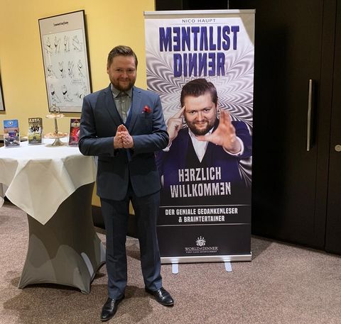 Unser Mentalist Nico Haupt kann es! WORLD of DINNER präsentiert den Gedankenleser in einer inspirierenden Mental-Dinnershow: Begleitet von einem erlesenen 3-Gänge-Menü liest er die Gedanken seiner Gäste, erkennt spielend Lügen und beeinflusst gar die Wahrnehmung seines Publikums!