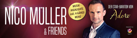 WORLD of DINNER präsentiert den Ausnahme-Sänger Nico Müller nun live und hautnah. Bei NICO MÜLLER & FRIENDS lädt der erfolgreiche Sänger und Musical-Darsteller ein zu einer aufregenden musikalischen Reise durch Rock, Pop und Musical.