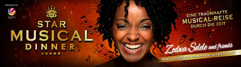 WORLD of DINNER präsentiert den Musical-Star Zodwa Selele und weitere bekannte Musical-Stars beim einzigartigen STAR MUSICAL DINNER mit erlesenem Menü: Lassen Sie sich von der leidenschaftlichen Sängerin auf eine hochmusikalische Reise durch die Jahrhunderte der berühmtesten Musical-Geschichten entführen!