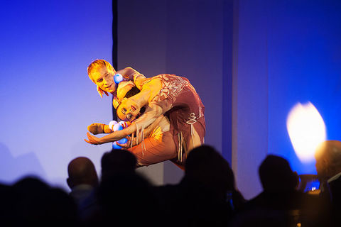 Als Duo ICE spielt das Akrobatenpaar mit dem Feuer, wenn es gemeinsam an einer Laterne den Pole Dance in neue Dimensionen führt.