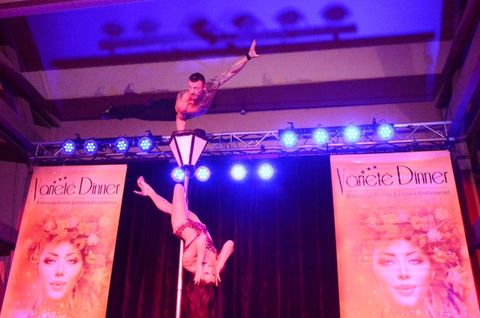 "Das Weihnachts-Varieté Dinner sorgte für ein volles Haus und die Gäste wurden nicht enttäuscht: Zauberei, Artistik, Jonglage und verblüffende Schattenspiele rahmten ein Vier-Gänge-Menü ein und sorgten für einen harmonischen, genussvollen Abend voll Faszination und Spaß."